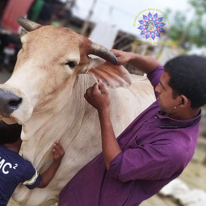 By the grace of Shri Radha Rani, we started this gaushala 4 years ago to help serve the cows of Vrindavan by providing means for their food, shelter, and medication. Our mission is to care for stray, abandoned cows, bulls, retired oxen, and orphaned calves. We provide them with hay, flour, fresh grass, clean water, medical attention, and a place where they can recuperate from injuries and stay peacefully. Additionally, we provide special medical services to the sick cows and bulls that are discovered on the streets of Vrindavan. In addition to providing veterinary services, we also provide powerful traditional ayurvedic treatments for wound healing, such as neem, turmeric, herbs, etc. Many cows, bulls, and calves are homeless in Vridavan. They don't have a place where they can find shelter in hot weather or a windbreak from the cold. A corral or dry lot must be available to keep the cows and bull in when irrigating and when the pasture needs a rest from grazing. Organizations that work with cows and bulls are unable to provide the necessary medical care for injured animals due to the high cost of medicines. This often leads to animals suffering and sometimes even dying from preventable injuries.